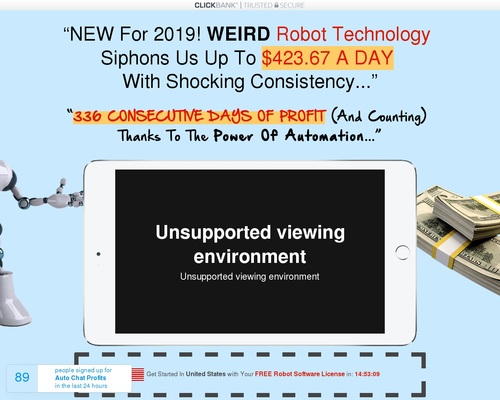 Este sitio y los productos y servicios ofrecidos en este sitio no están asociados, afiliados, respaldados o patrocinados por Google, eBay, Amazon, Yahoo o Bing, ni han sido revisados, probados o certificados por Google, Yahoo, eBay, Amazon o Bing. . Los beneficios del chat automático y los ejemplos que se muestran en esta presentación no representan una indicación de éxito o ganancias futuros. Todos los resultados que se muestran en nuestra presentación, sitio web o literatura de marketing son resultados atípicos. Se desconocen los resultados promedio.
