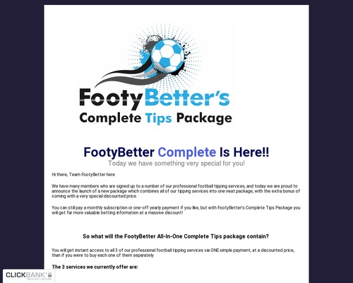 ¡Obtenga acceso al paquete completo de consejos FootyBetter hoy por un precio bajo!