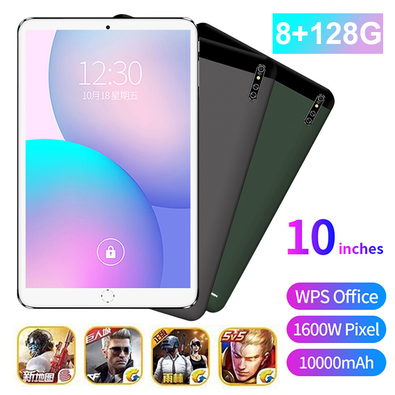 10 “Ultrafino 4G 8GB + 128GB Tablet PC Android 10.0 WIFI Dual SIM Cámara triple