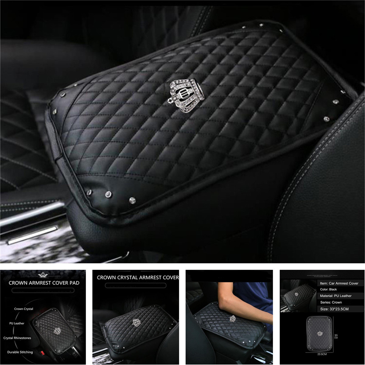 Accesorios de coche de cuero de PU Bling Rhinestone Consola Apoyabrazos Cubierta Pad Protector