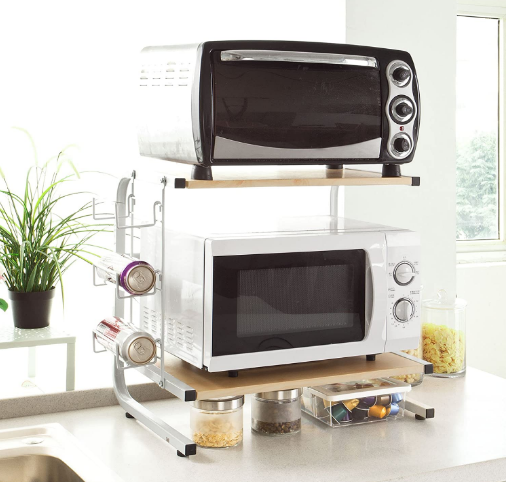 Cocina Estante para microondas Estante Rack Práctico Ahorro de espacio 2 Electrodomésticos Almacenamiento