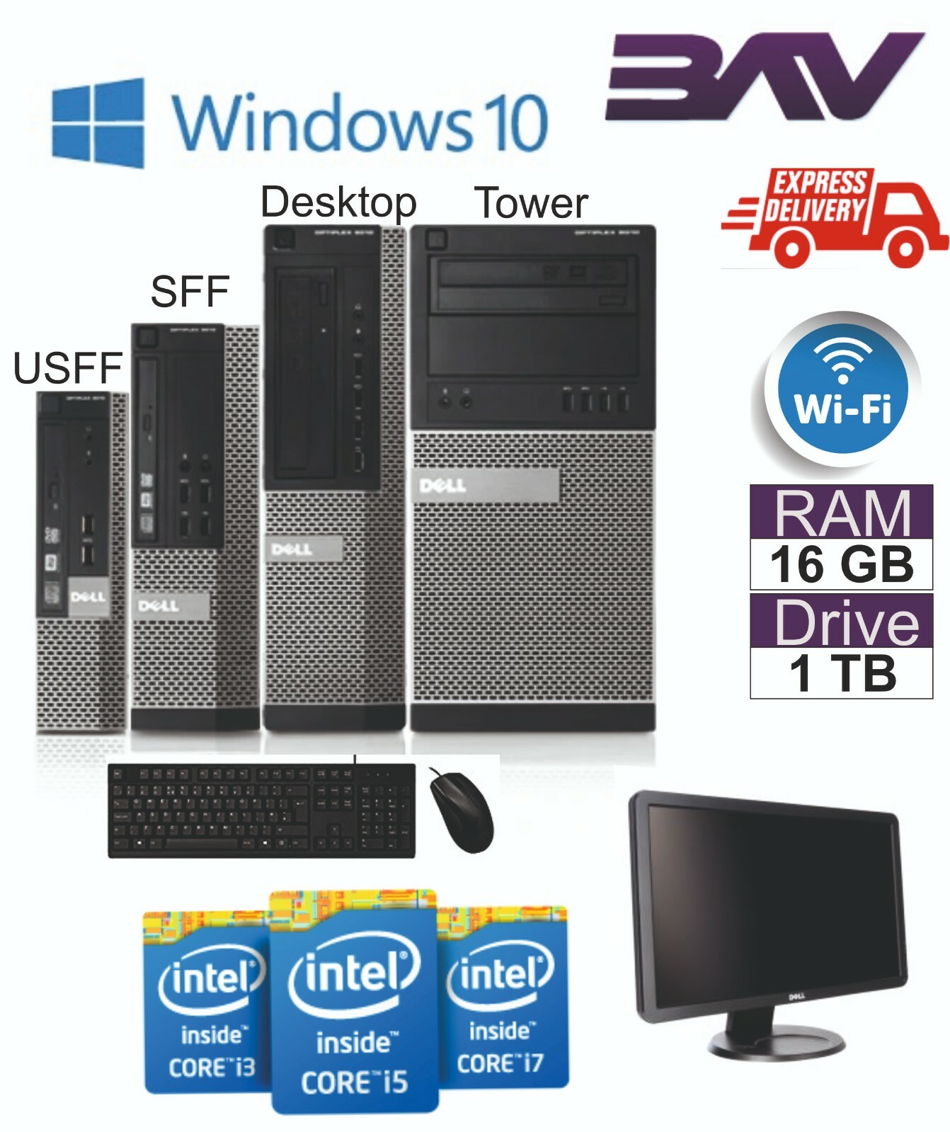 FAST Dell Computer Desktop PC BUNDLE INTEL i3 i5 i7 500GB 2TB HDD SSD 8GB 16GB