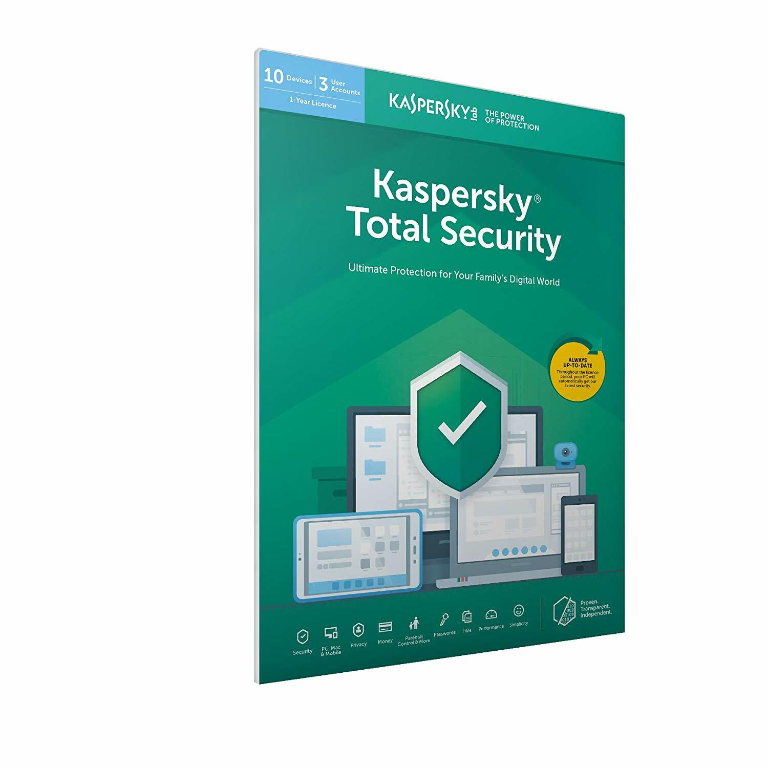 Kaspersky Total Security 2020 para dispositivos de 10 PC Clave de descarga por correo electrónico de 1 año para la UE