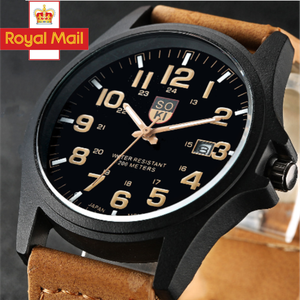 Men Women Military Leather Date Watches Quartz Analog Army Casual Wrist Watch UK