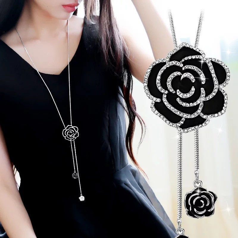 Nueva moda mujer joyería cadena gargantilla larga colgante de cristal collar llamativo
