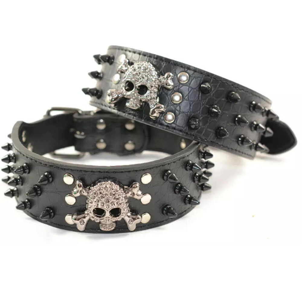 Suministros para mascotas Black Skully Rivet Collar Corbata para perros para varios perros – Prevención