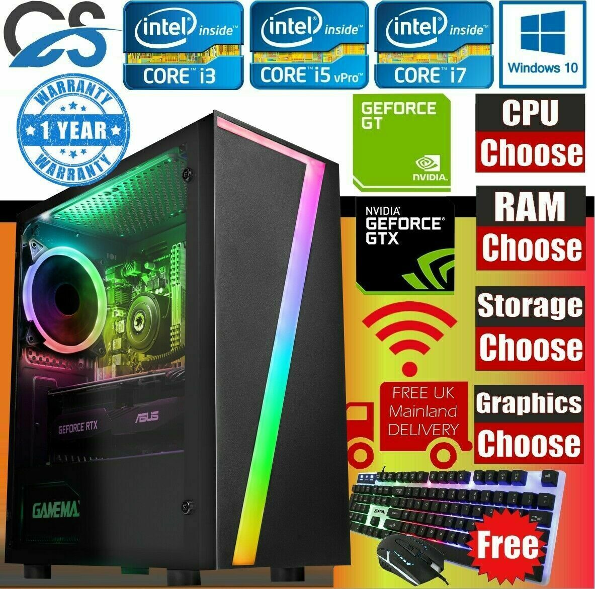Teclado y ratón LED gratuitos, USB Wi-Fi gratuito de 150 Mbps, cable de alimentación gratuito |