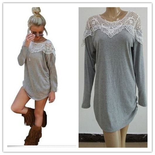Women’s New Fashion Casual Loose Shirt Long Sleeve Lace T-shirt Tops Blouse